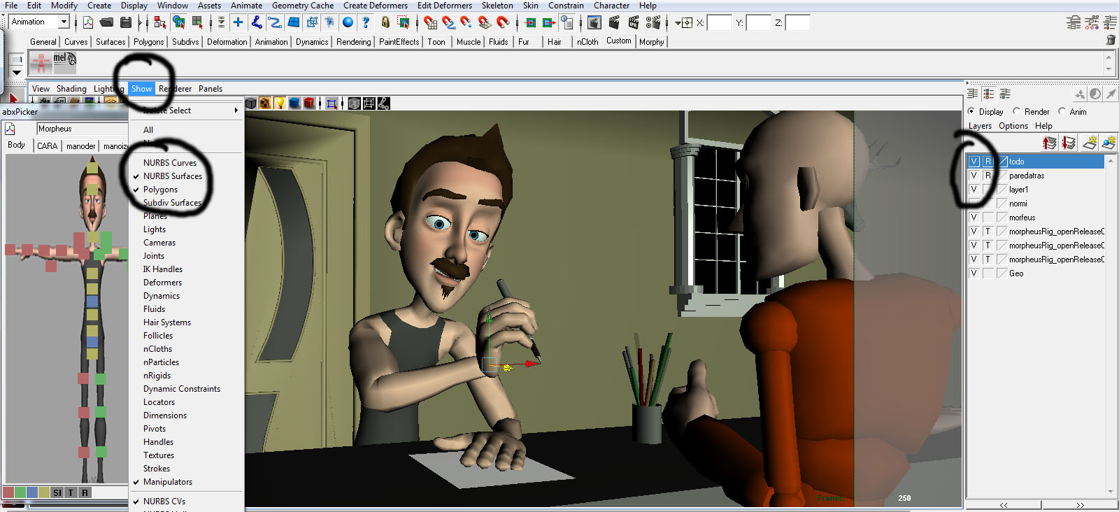 Hola, estoy mirando por todos los menús y demás, pero como es la primera vez que utilizo Maya no sé por dónde, me quedan 9 días de la versión trial, de todas formas, voy a mirar por que este Rig no lo veo completo, me faltan varios paneles de UI me parece.