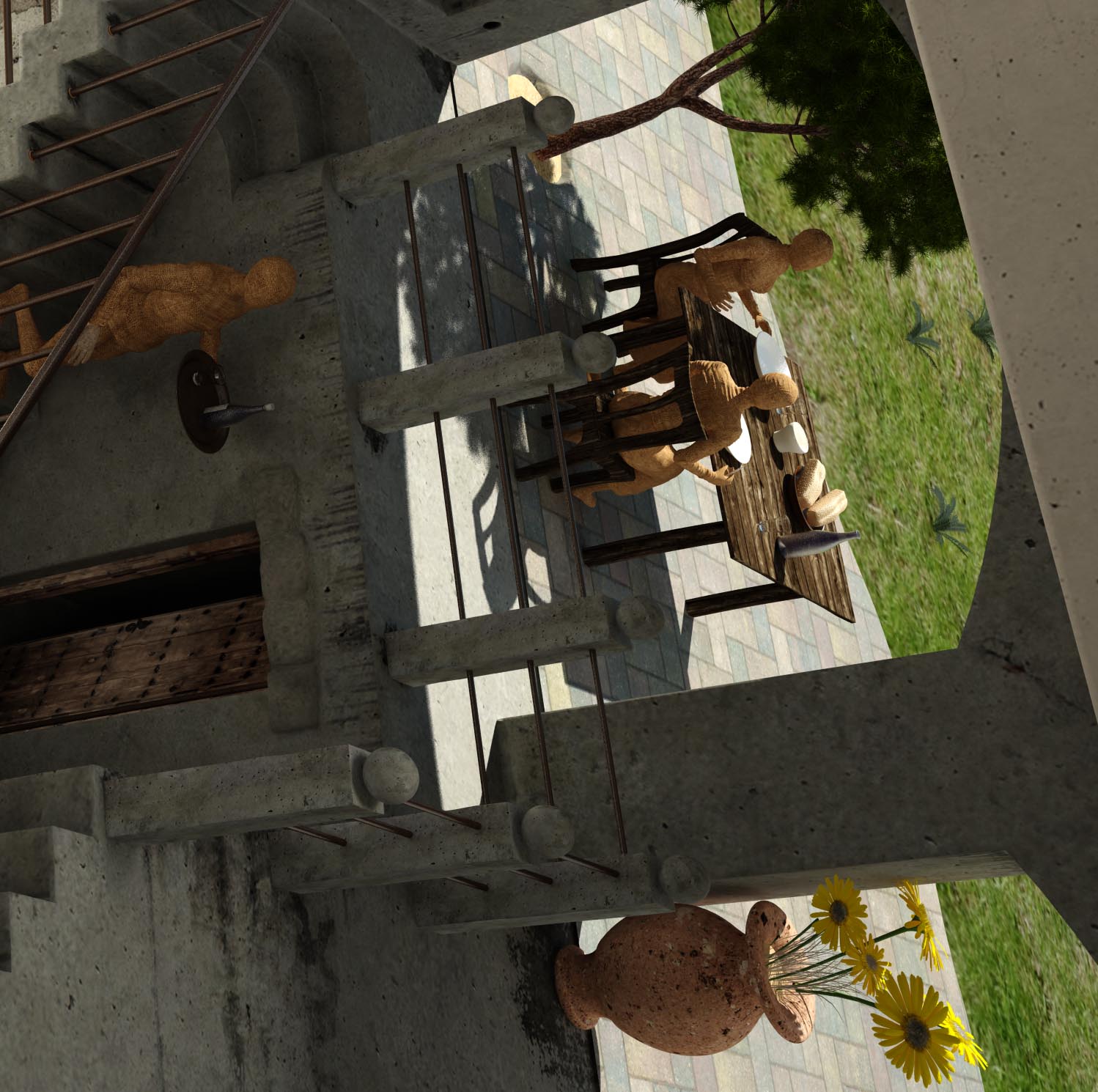 Es cierto que los exteriores me quedaron un poco pobres, son planos con textura. Me gustaría haber modelado la hierba con autograss, pero la fecha apretaba.