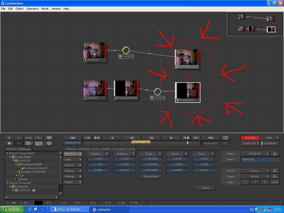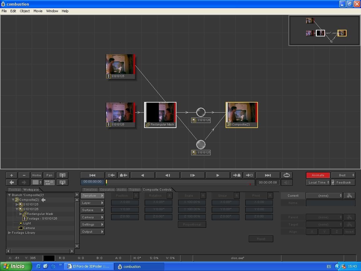 Hola tengo dos videos, uno de ellos tiene un máscara para conseguir un clon, pero luego no sé cómo unirlo, seguramente sea una tontería, pero se muy poco de Combustion. Gracias y saludos.
