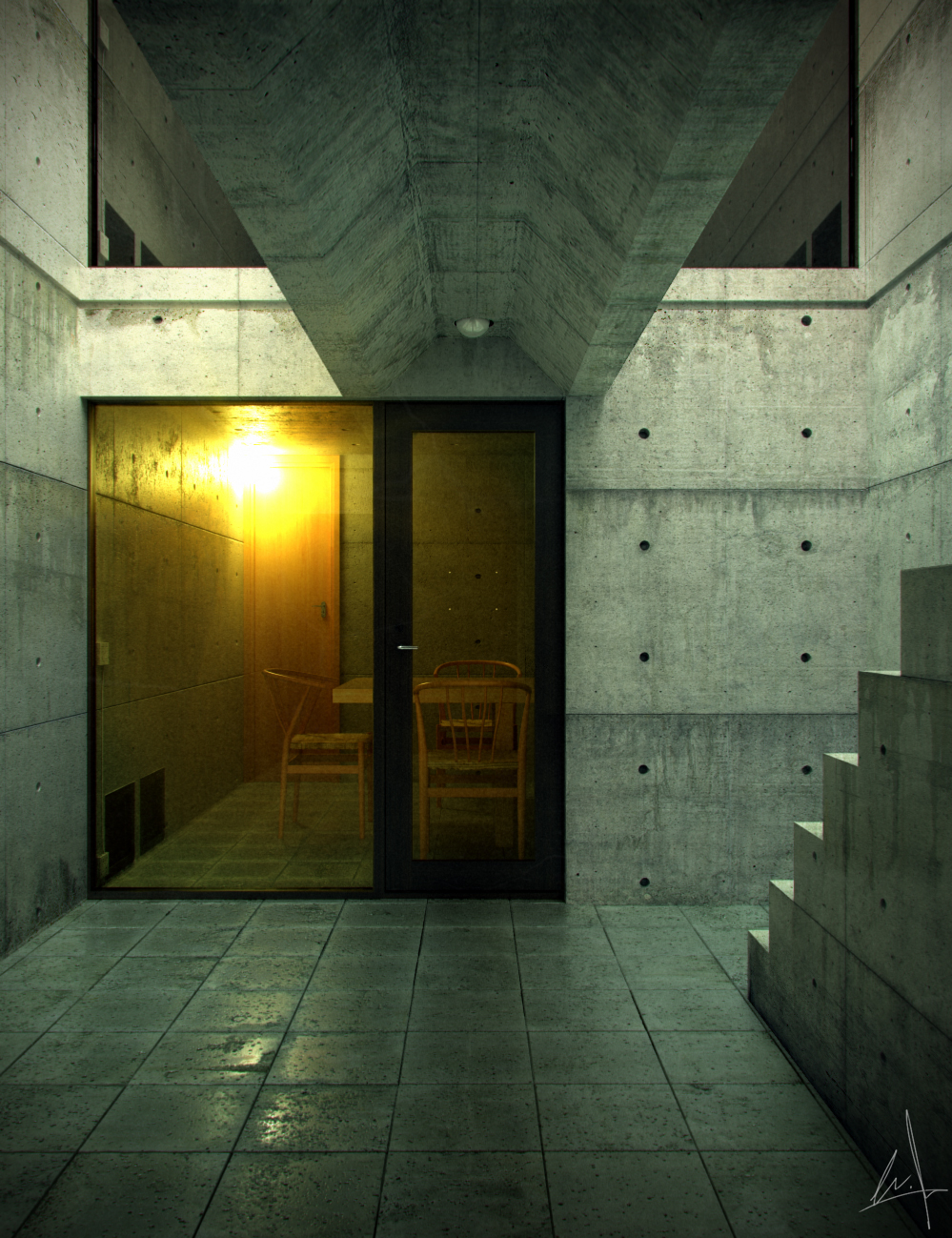 Hola Mario, ¿Qué tal? Trabajos de gran calidad, siguiendo tu línea. En la casa de Tadao ando, le daría más chamfler a esa viga que cruza la habitación y traspasa la cámara, se ven las aristas quizás demasiado perfectas. Con ese hormigón unas aristas más curvas podrían decir más a la escena.