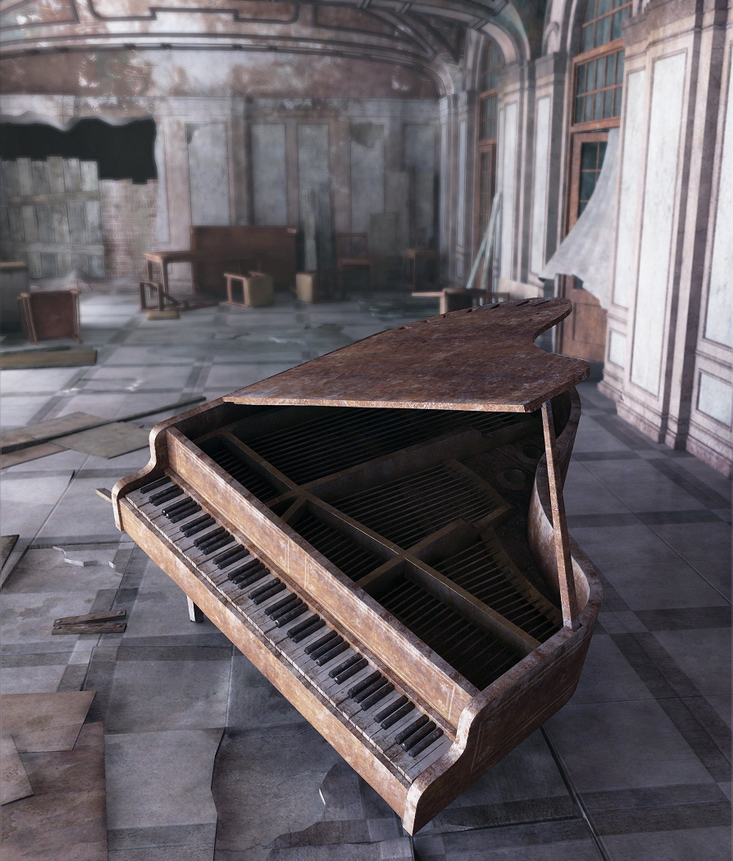 Me gusta la iluminación, y casi todas las texturas, pero es verdad lo que dice sui, está demasiado limpio para estar todo tan roto, por cierto, la primer imagen adicional me gusta mucho más como composición que la que muestras como principal, la siento más natural, más justificada. De todas maneras, un trabajo, ya me gustaría poder texturizar así.