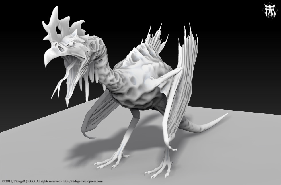 la cocatriz, esta criatura aviar tiene casi el tamaño de un ganso grande o un pavo. Pose la cabeza y el cuerpo de un gallo, alas de murciélago, la cola larga de un lagarto, y sus ojos brillan con un destello violeta de aspecto peligroso.