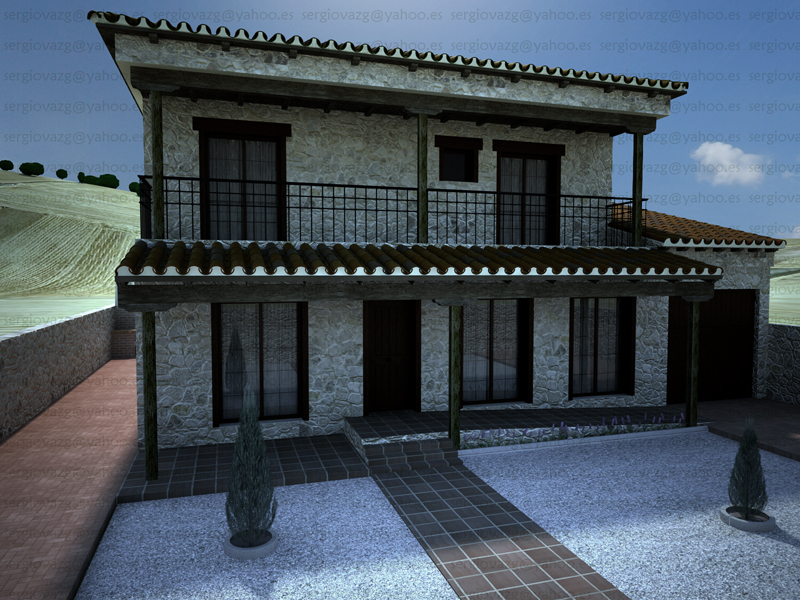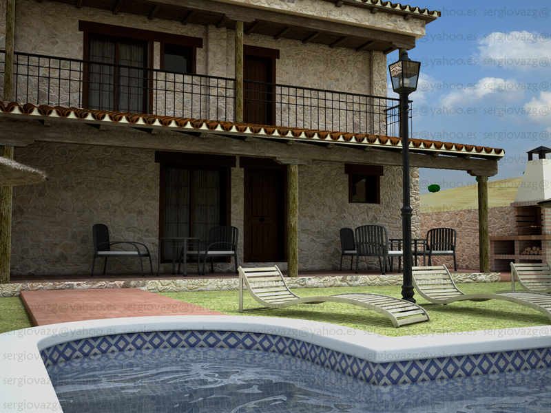 Aquí os presento unos render de una casa rural que utilicé para mí proyecto fin de curso en Cice. Se trata de una casa real situada en la provincia de ciudad real. Todo modelado con 3ds Max 2010, las plantas son de Onyx y el renderizado con Vray. Postproducción con Adobe Photoshop CS4.