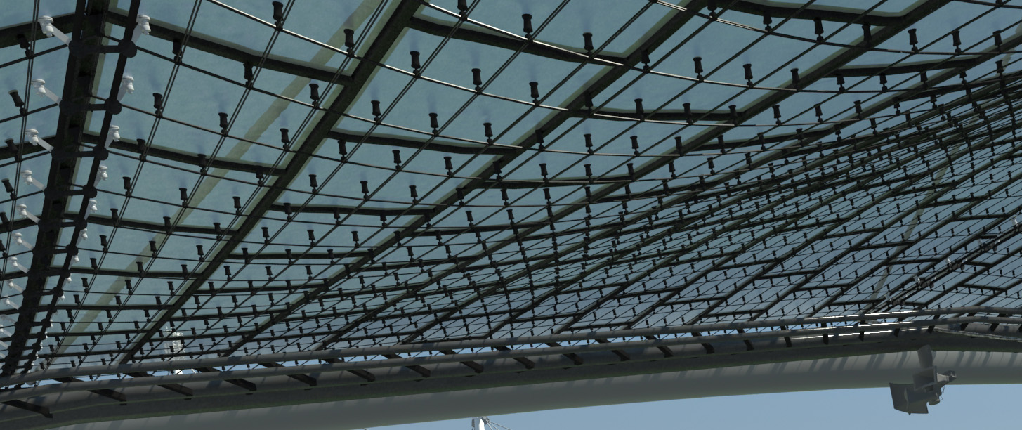 Los avances, a ver es un trabajo laborioso. Hoy he estado modelando toda la serie de estructuras que sostienen las carpas. Aunque cambie un poco la forma es básicamente el tipo de carpa del estadio olimpico de munich, echadle un ojo en internet.