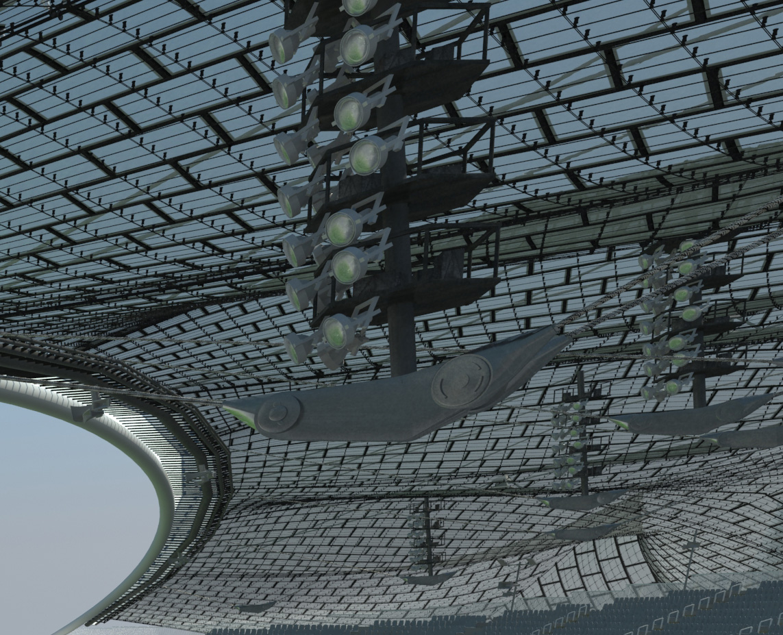 No me guio por ninguna fotografía en especial, me gustan los estadios, uso múltiples fotografías, cojo una cosa de aquí otra de, allá, examino los tamaños de las cosas, las sensaciones que dan, ya que no dispongo de medidas exactas. El estadio es invención mía (lo dibuje con 18 años cuando ignaraba esto del 3d, lo subiré para que lo veáis), aunque está muy basado en el olimpico de munich, échale un ojo en internet.