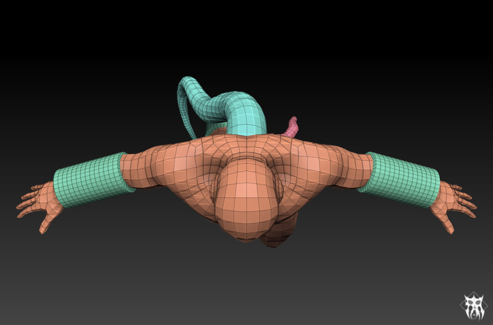 En este avance se puede notar que ya trabaje un poco más en el modelo y le termine de hacer los accesorios de los brazos y piernas, también le cambie la postura a la cola por otra que me gustaba más para que la cola tenga más protagonismo ya que la postura anterior casi que ni se notaba de frente y la imagen principal será de frente así que, necesitaba que la cola se viera más.