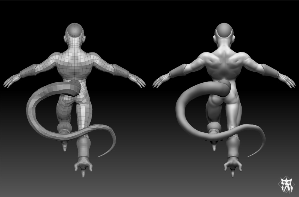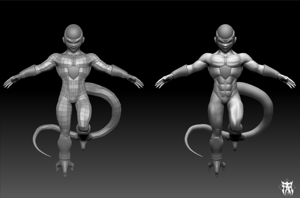 Nunca me a atraído el modelado orgánico, pero admiro el meritazo que tiene. Siempre he imaginado muy repetidas veces como seria un freezer bien hecho en 3d, nunca me he arriesgado a intentarlo. Impaciente estoy por ver la evolución de esto.