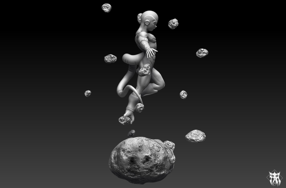 Bueno, he visto a muchos que han echo su propia versión de algún personaje de Dragon Ball como, por ejemplo, el amigo velazques que, anda haciendo su Vegeta (ánimo con eso), así que, me dije, por que yo ¿no? Así que, elejí uno que va en la misma onda que las criaturas que me gusta modelar.freezer, fue el elegido para modelar y a la vez recordarnos esa buena serie que fue Dragon Ball, y como ya había uno por ahí modelado estilo humanoide quise hacer mi versión más al estilo original del anime.