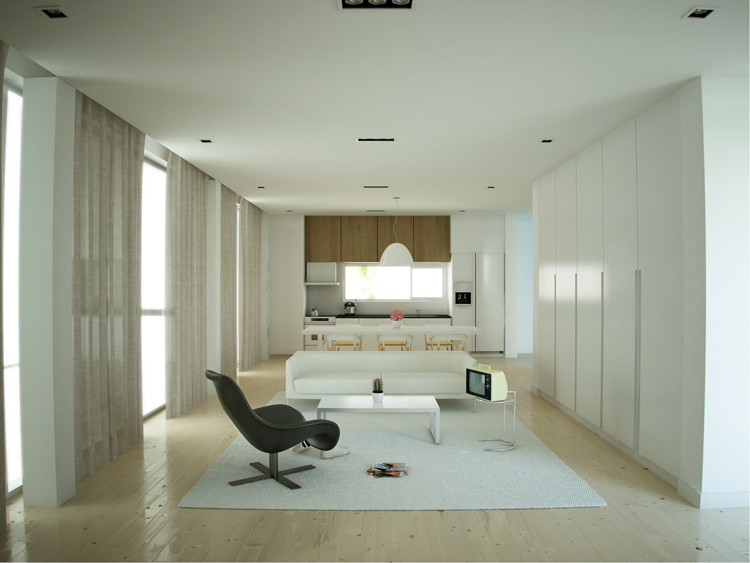 Para terminar y no aburrirte, te diría que tienes un nivel en el que podrías plantearte un paso adelante, es decir, coger escenas que arquitectónicamente sean más interesantes y hagan que afrontes nuevos retos y dificultades, aunque sean en el plano personal y no te lo pidan los clientes, ya que las escenas que subes de interiores de viviendas las clavas y poco más te pueden aportar para mejorar. Un saludo y mis estrellas.