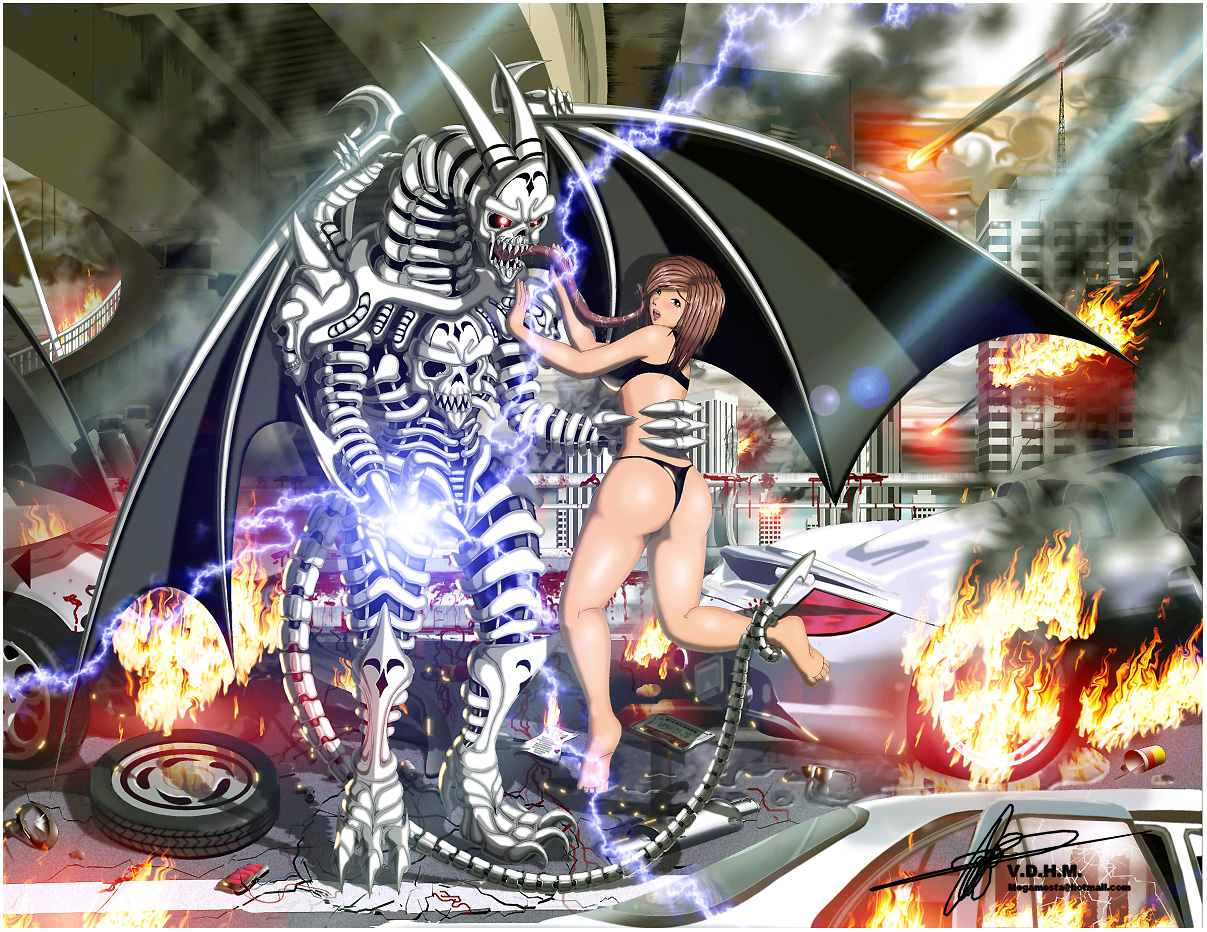 Saludos a todos este es mi trabajo titulado el amanecer del demonio, es diseño propio, aunque el demonio blanco esta inspirado en el dragón de una estrella de Dragon Ball GT, además del nuevo engendro de aliens resurrección, así como edie de Iron Maiden, claro con mi estilo ISO esquelético, tarde cómo un mes en hacerlo, fallan mucho las proporciones y los colores, pero hice todo lo posible por dejarlo mejor, el demonio blanco diseñado por su servidor me sirvió de inspiración para hacer un disfraz junto con otro amigo, a base periódico cartón, alambre y engrudo, el motivo fue para un concurso de Halloween donde ganamos el primer lugar, pondré ambos trabajos en este tema ya que a partir del dibujo, se hizo el disfraz sirvieron como planos, por cierto, ganamos 20,000 pesos mexicanos(1564 dólar americanos+-) en el manaus barrio antiguo monterrey México, fue nuestro máximo logro en el 2010, espero que les agrade saludos a todos, y feliz año nuevo a todos.