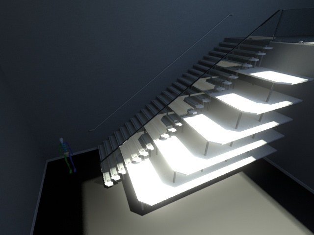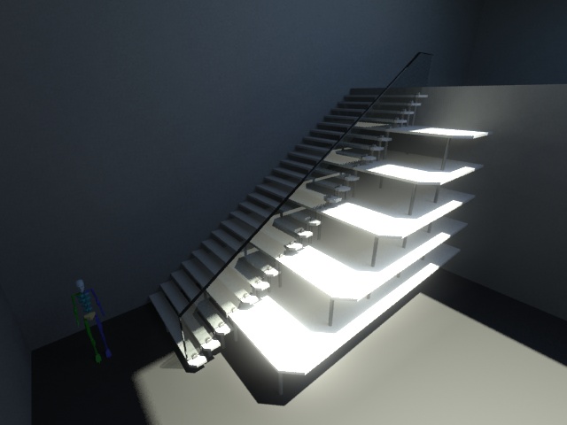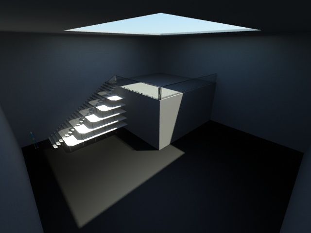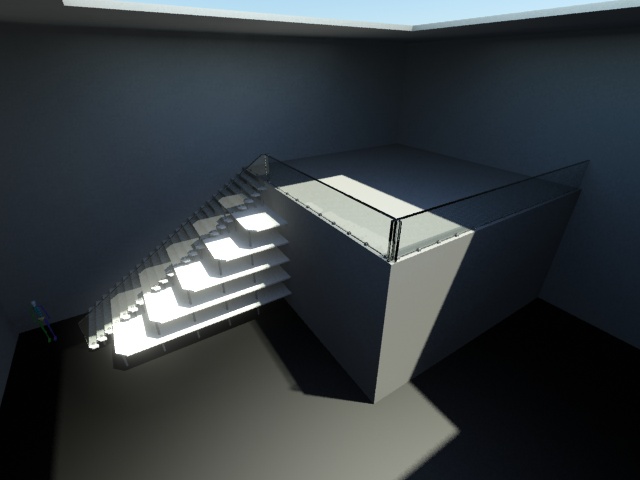 Bueno, esto estaría destinado a ser un pequeño espacio expositivo y constaría de una habitación con una parte elevada a la que se accede por la escalera esa. Salvo lo de cristal no hay materiales aún.