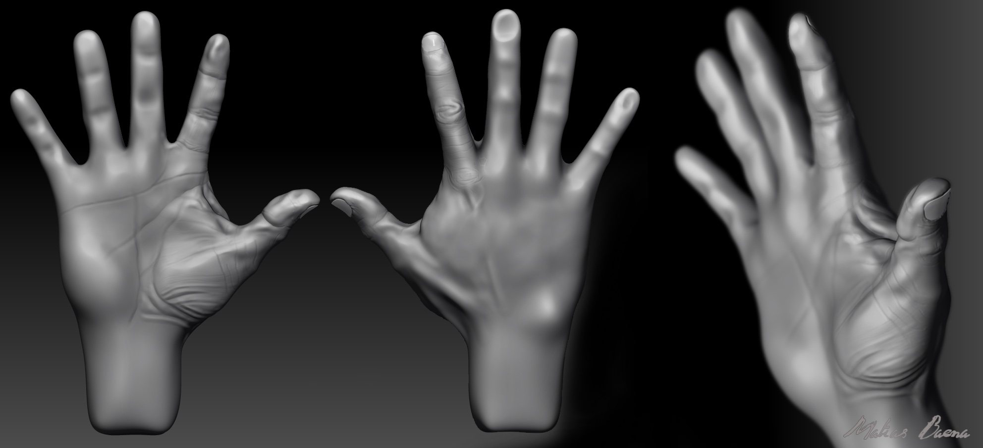 Hola k4d, te comento mis pasos, cree la base de la mano en 3ds Max solo para que los polígonos me queden más o menos bien repartidos (se le llama topología a una mano?), después en ZBrush ir agregando detalles y subdivisiones, esta creado casi todo con la brocha standard_usando el modificador de la brocha brus modifier, en las uñas use flattem y la brocha move en general. Gracias por tu comentario es mi primer trabajo después del curso, y nada a seguir practicando. Saludos y gracias.