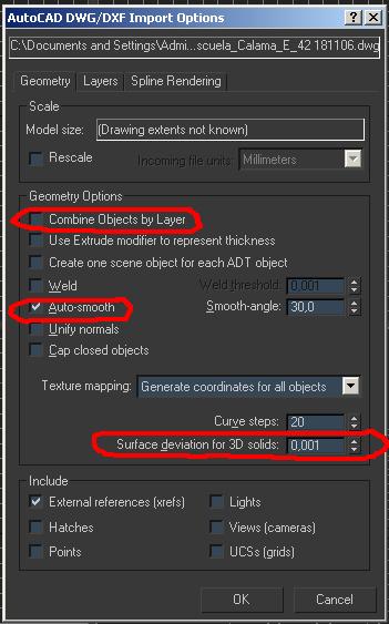 Tengo un problema similar y por no abrir un nuevo tema lo pregunto aquí. Yo exporto a 3d estudio de AutoCAD, unas polilíneas, que son curvas de nivel de terreno, pero resulta que al verlas en 3d estudio, esas líneas tienen grosor, y son como tuberías, en lugar de representarme las líneas como líneas, me las representa como tuberías finitas, pero parecen objetos 3d cuando simplemente deberían de ser líneas en el espacio. El tema es que yo creo que antes no me pasaba esto, con lo que supongo que, he debido cambiar alguna opción. Puede será.