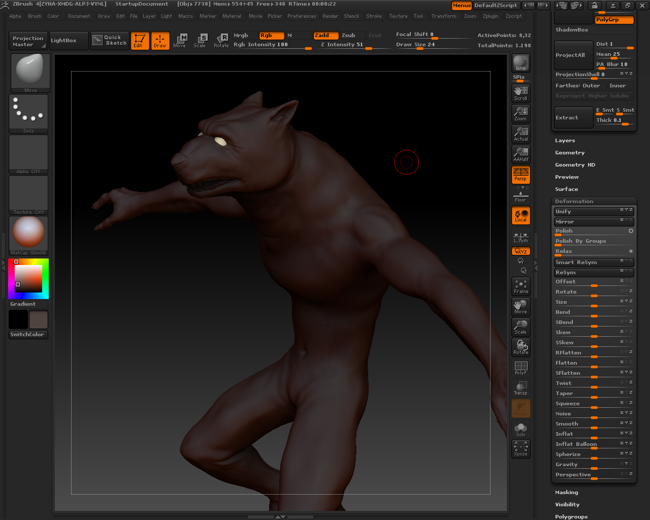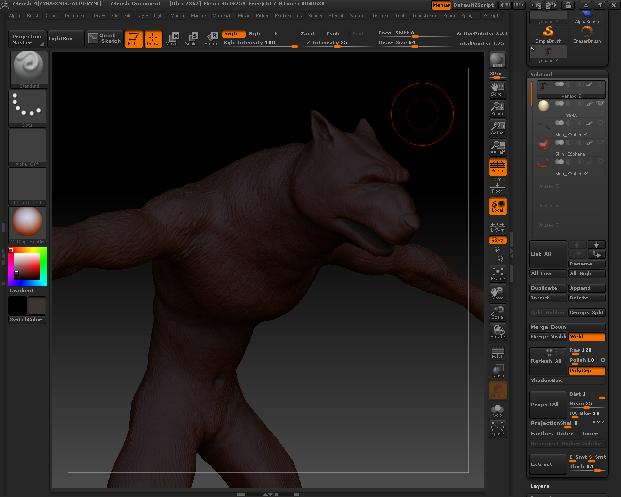 Amigos pues estoy trabajando a ratos en este raro humanoide y quiero hacerle el pelo que le cubre el cuerpo, pero sinceramente no sé cómo lograr un efecto tal a si que quiero que me den unos consejo para que al fin lo acabe de hacer cualquier consejo.