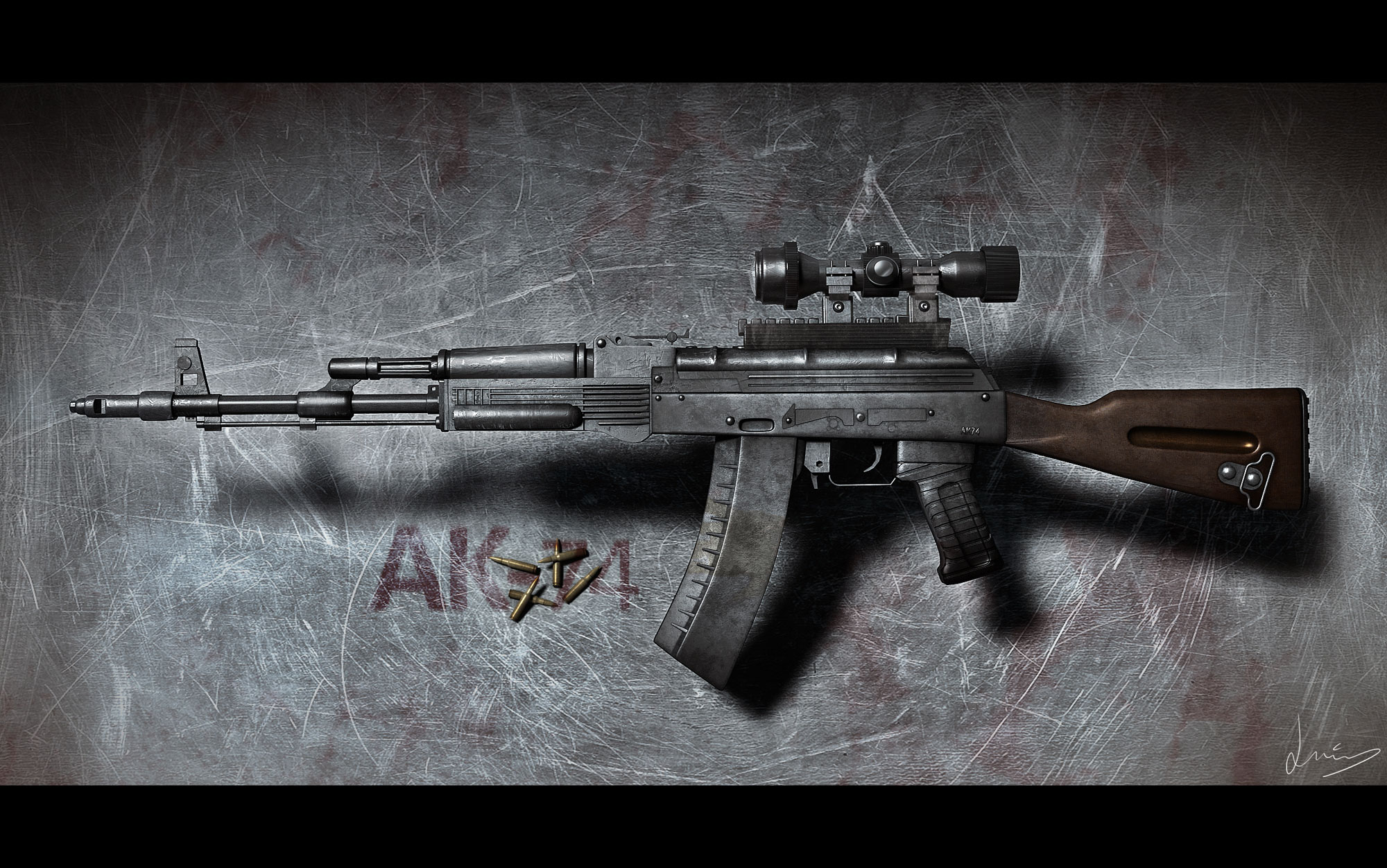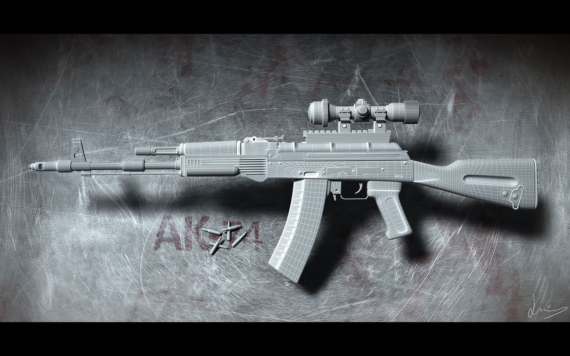 Aquí les presento mi último trabajo, es un arma ak-74. No soy partidario de las armas ni mucho menos ni me atraen, pero como me gustan mucho los videojuegos y en especial Call of Duty, bueno pues sobran las palabras entonces. Este rendering lo hice con 3ds Max, Vray y Adobe Photoshop en la postproducción, espero que les guste sobre todo a los apasionados de las armas que seguro le sacaran más de un fallo por ahí, pero bueno me divertí con este trabajo que es de lo que se trata. Un saludo a todos, bienvenido cualquier tipo de comentario y ya de paso dejarles saber que pueden visitar mi blog www.3dluistutorials.com o mi canal de YouTube www.youtube.com/3dluistutorials para ver tutoriales de 3d y postproducción gratuitos, además de poder ver sesiones en directo online de vez en cuando. Chao.