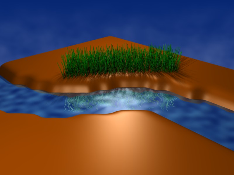 Tengo un problema, seleccione la Lamp Sun y clické el botón ray shadows, hice el render y el pasto sigue igual, y cuando estaba la Lamp normal no estaban así, aquí la fotografía con el noise en el agua:
