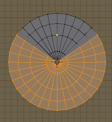Creo que es mejor que empieces por un círculo, calcula la cantidad de vértices que quieres, luego extrudes hacia el centro (algo parecido a la imagen) y finalmente borras lo que sobra.