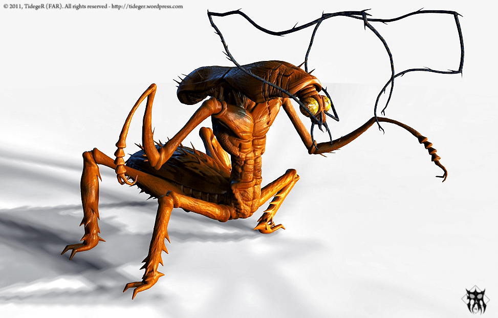 Hola amigo, como vas? Espero que bien. Con respecto a la criatura, es como si una Mantis se hubiera apareado con una cucaracha y este hubiera sido su primogenito, el orguyo de la familia.