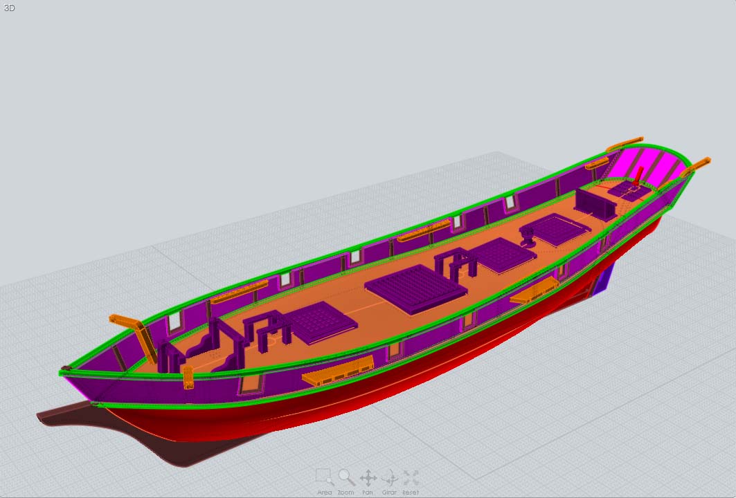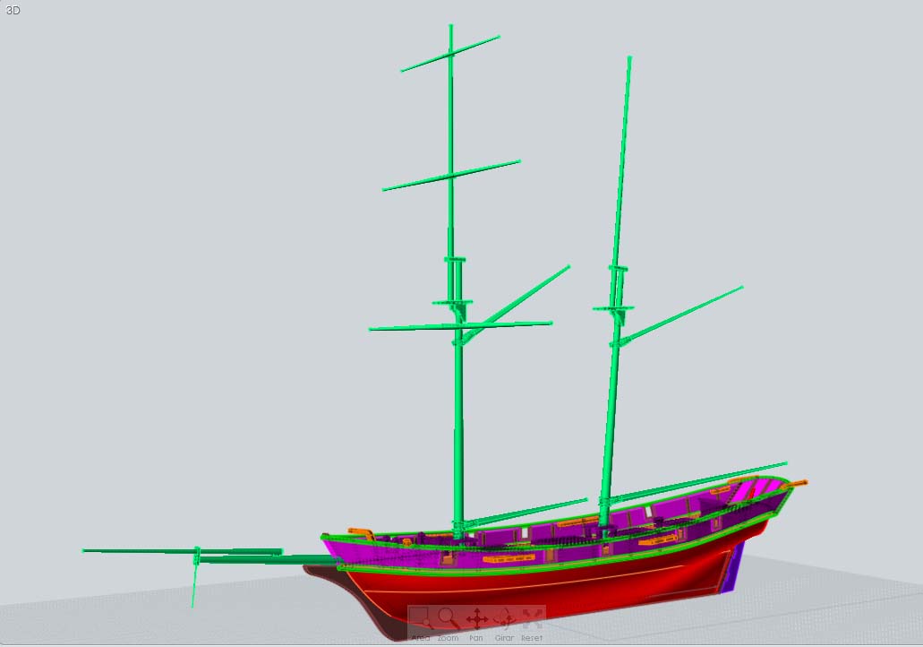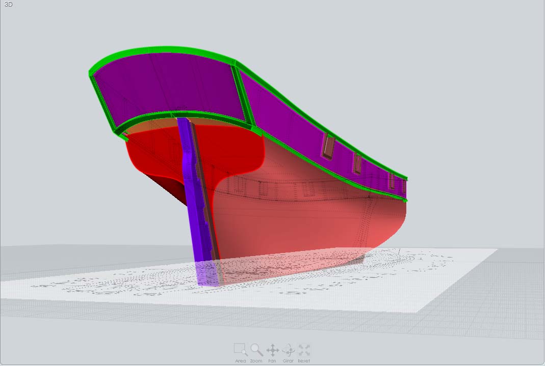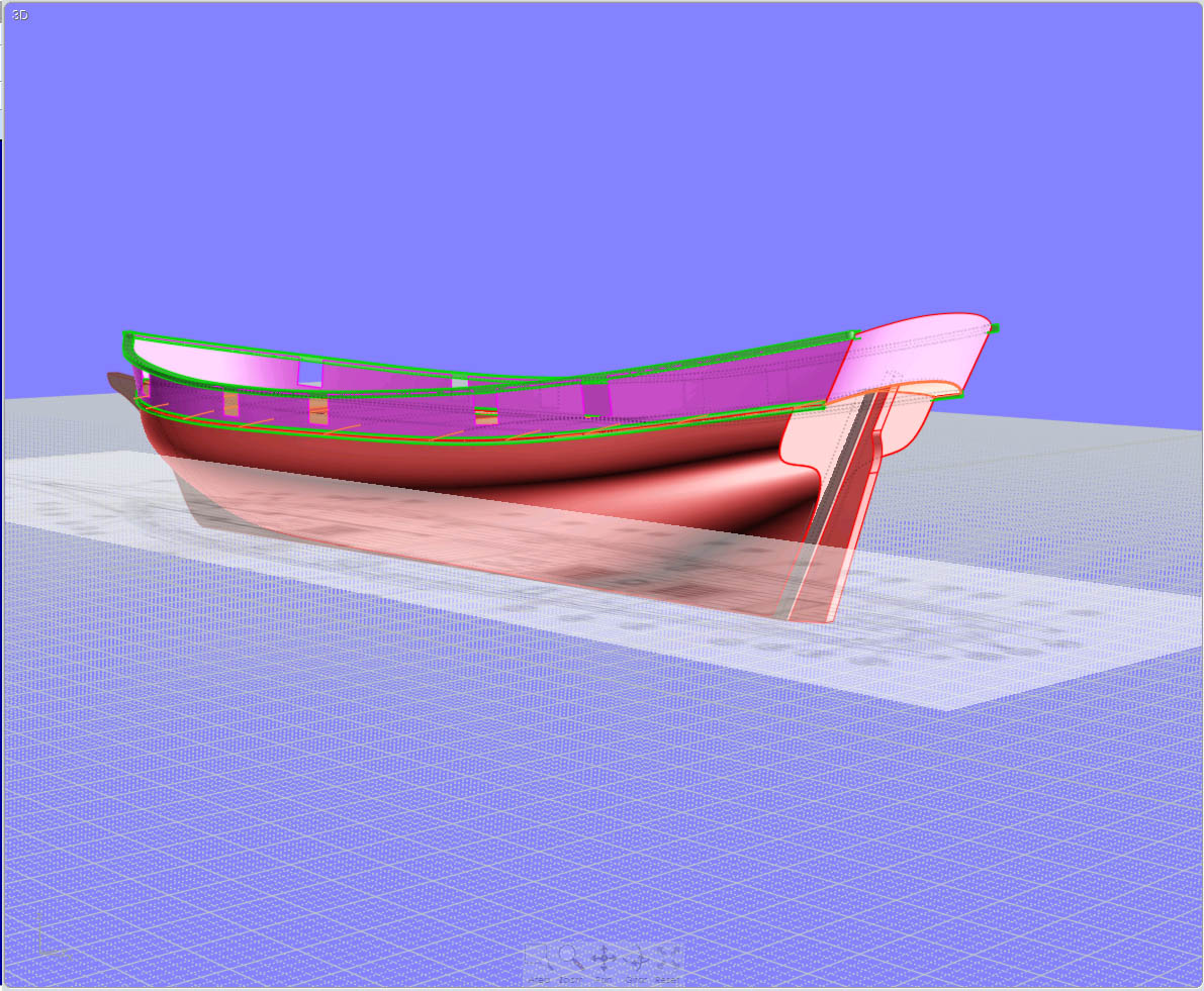 Bigdeivid: pues lo dicho. Realmente en las primeras imágenes, me limité a crear las curvas de contorno (las cuadernas), ponerlas en su sitio con respecto a la quilla y sacar la superficie. Pero era muy tarde y tal cual lo hice subí las imágenes. Luego he estado dos días cambiando y perfilando las curvas.