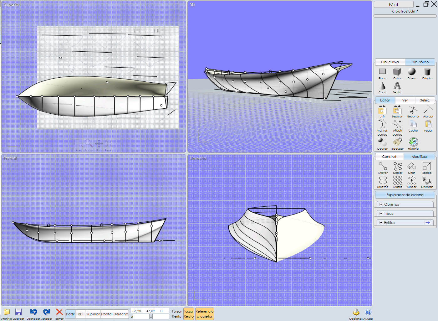 Veo que te gustan los barcos, una pregunta como afinas las curvas para pasar del solevado que tienes en la primera publicación a la segunda, porque han desaparecido las formas raras. Un saludo y estaré atento a los avances.