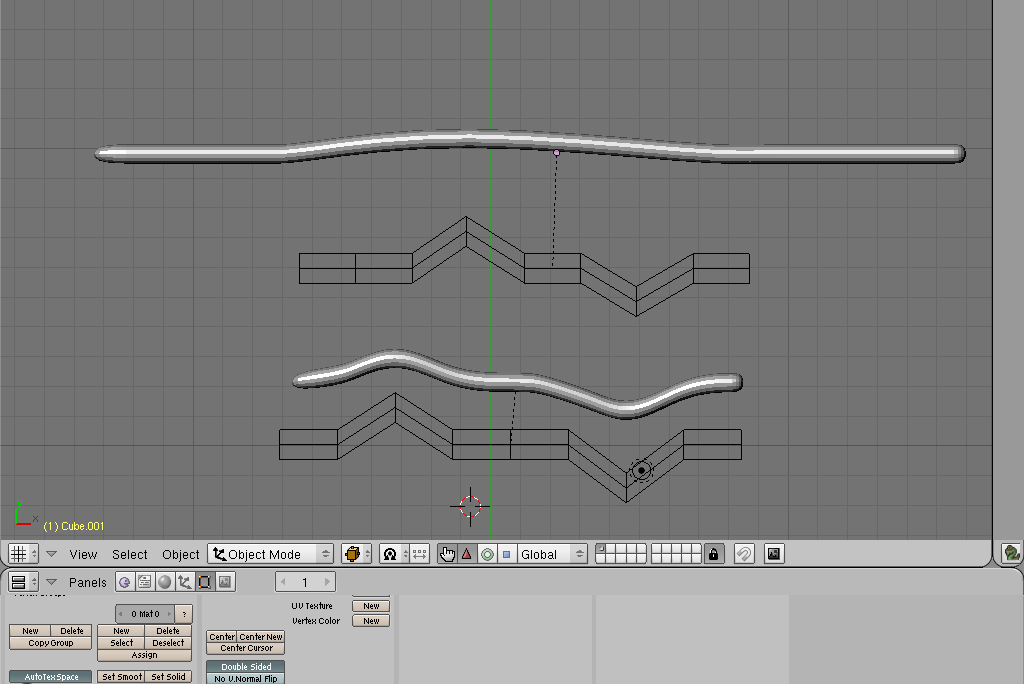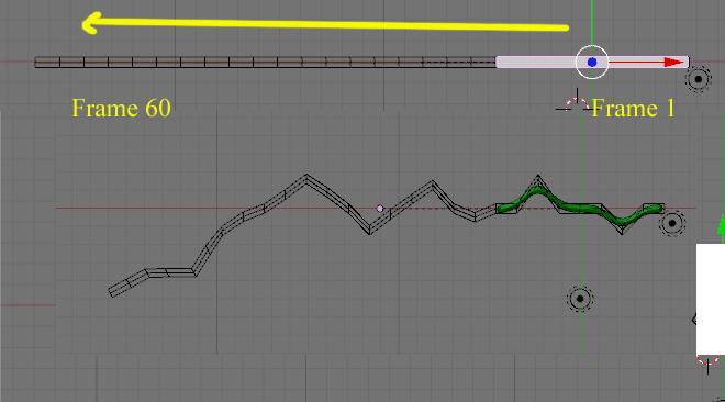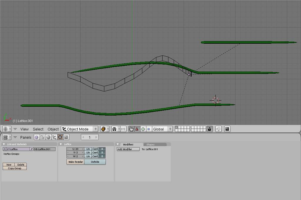 Creo que en imagen se ve mejor. Se crea la serpiente recta, y luego creas el lattice, se emparenta con Control + p > deform lattice.
