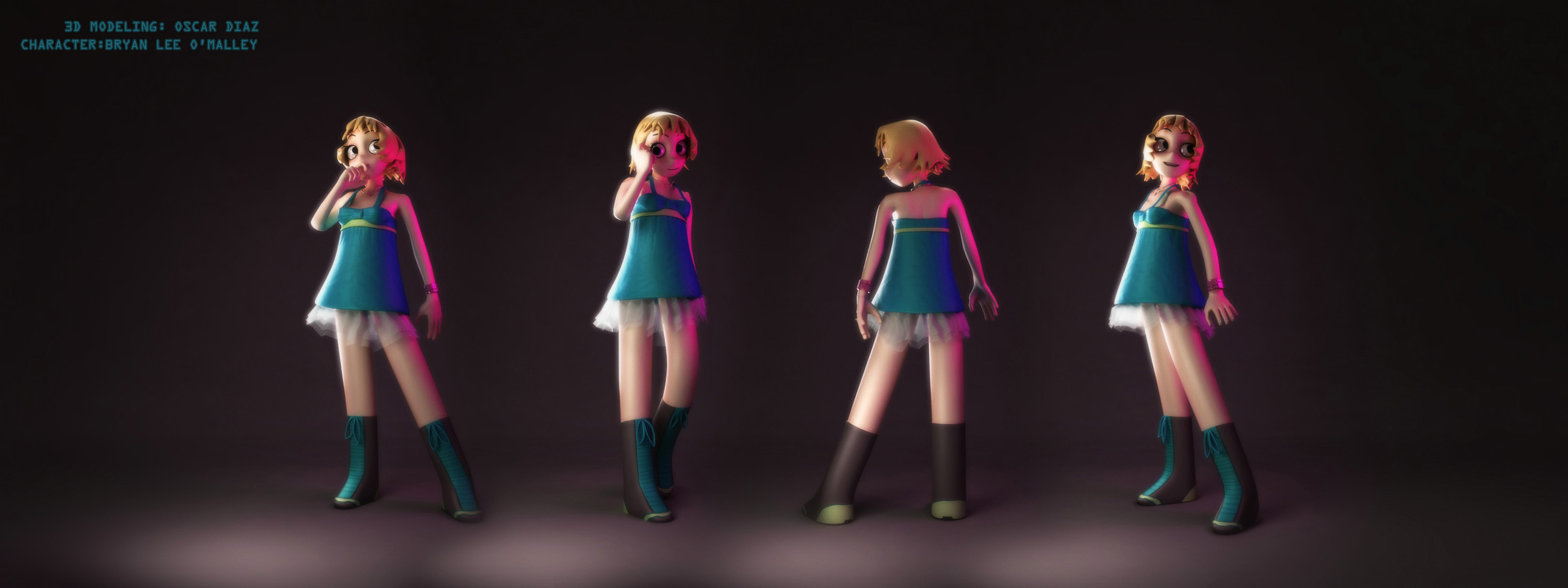 Hace tiempo que no monto algo en 3d poder. Este es un personaje que aparece e las novelas gráficas de Scott pilgrim creado por Bryan le omalley.