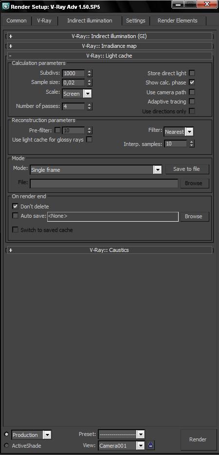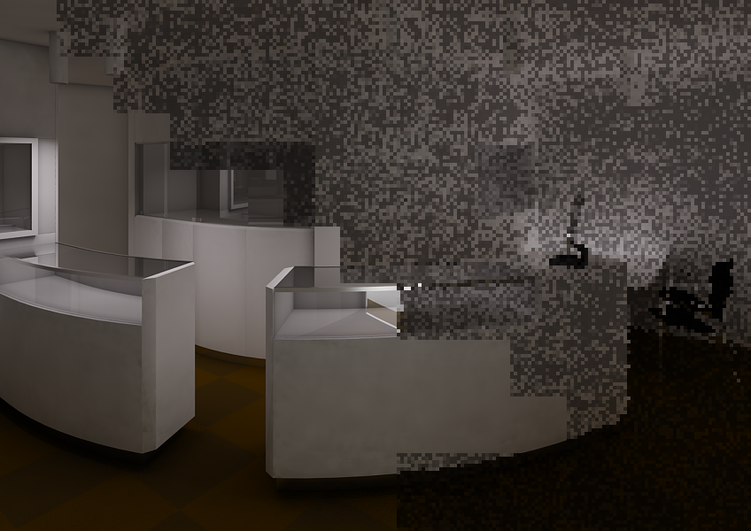 Pero creo que lo que más importa son las IES. He probado con muchas y ninguna me rebajaba el tiempo así que, me las cargué. Traté de lograr una iluminación global de la escena con el Color Mapping (no me gusta subir mucho el dark, pero bueno.) y con Vray Physical Cam, después solo he metido unos spot light standard en los cilindros sobre mostrador, ya que, al cliente le hacía gracia ver el arito que se forma en suelo.