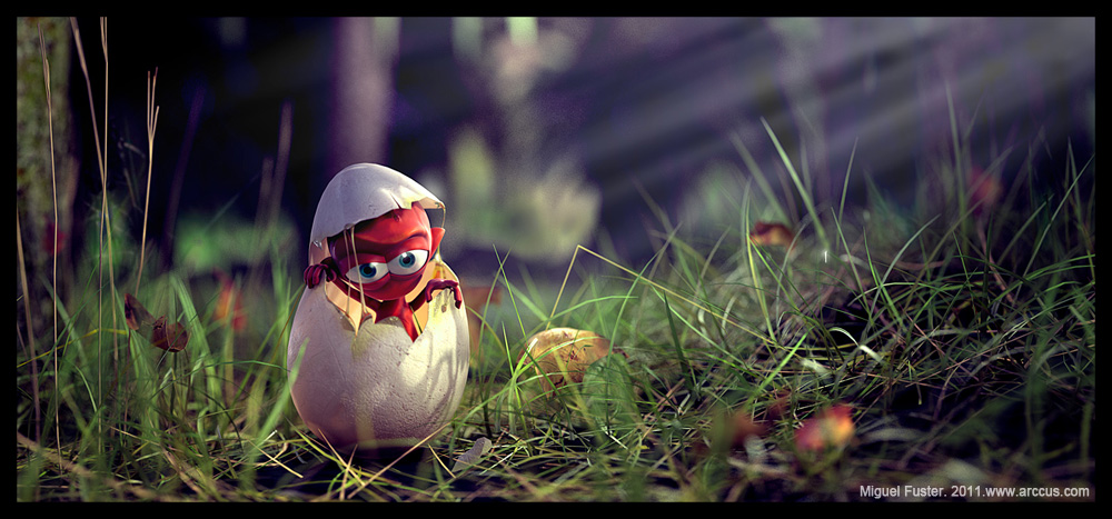 Saludos al foro. Llevo un tiempo trabajando sobre un personaje para usarlo en pequeños test de animación y con la idea de hacer un pequeño corto con el y decidí crear una imagen fija con motivo de su nacimiento.