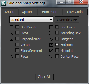 Dale click derecho al botón Snaps togle y se te abrirá un menú emergente. En la solapa Snaps elige las opciones del subgrupo standard que deseas y luego ciérralo.