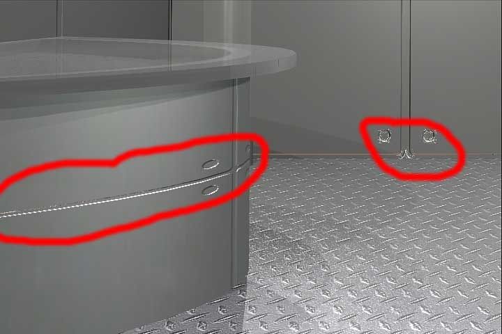 Me la impresión que tienes un Bump demasiado exagerado, quizá por que la imagen usada no es correcta. El suelo también tengo esa sensación, pero con una imagen tan no me apuesto nada. Bueno, una cerveza si que me arriesgo. Saludos.