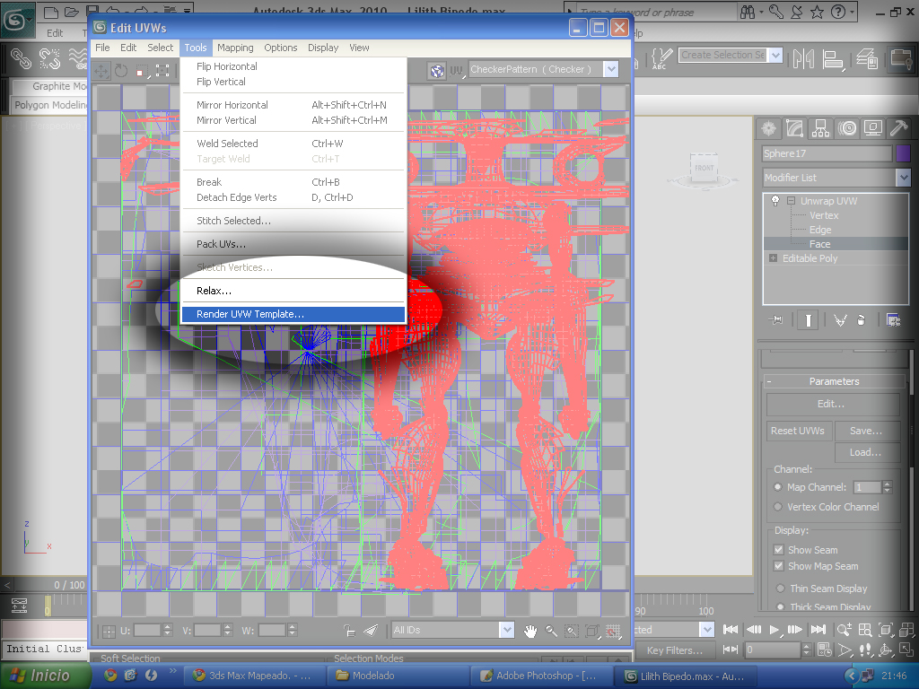 Vaya, ese Unwrap siento decírtelo así, pero, es un desastre. Busca alguna tutorial de mapeo con Unwrap. De todas formas, podrías buscar y descargar http://www.unwrella.com/.