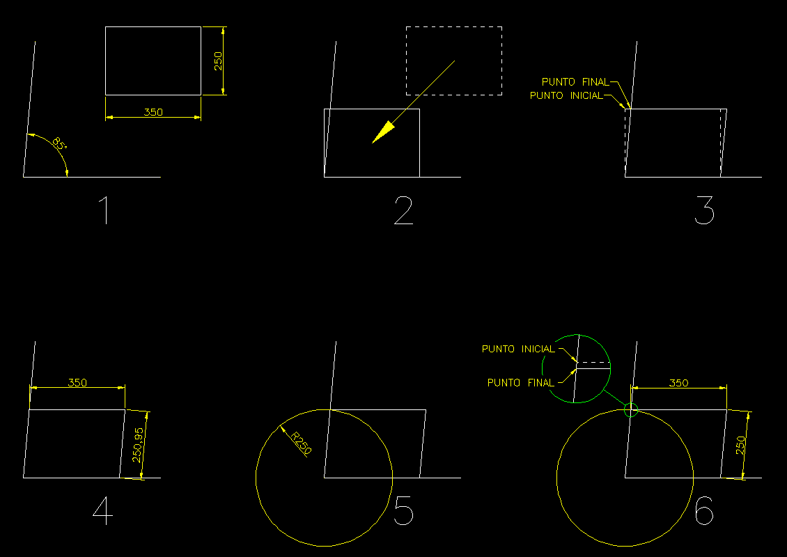 Me expreso mejor con mi pregunta lo que pasa es que quiero acoplar un rectángulo de.25x.35 entre dos líneas (una es la horizontal y la otra es la que forma un ángulo de 85° con la primera linea) que forman un ángulo de 85°. Lo que quiero es que mi rectángulo se deforme de tal manera que se asemeje a un paralelogramo, mejor dicho que la base del rectángulo de.35 siga en la dirección de la primera línea horizontal y que el otro lado del rectángulo de 0.25 siga la dirección de la línea que forma un ángulo de 85° con la primera línea. No sé si e sido claro, pero yo si lo he podido hacer con líneas, pero demora mucho y luego tengo que convertirlas a una polilínea sola (es que me representan las columnas). También he probado con girar, pero no se puede porque si lo giro la base ya no queda con la horizontal.