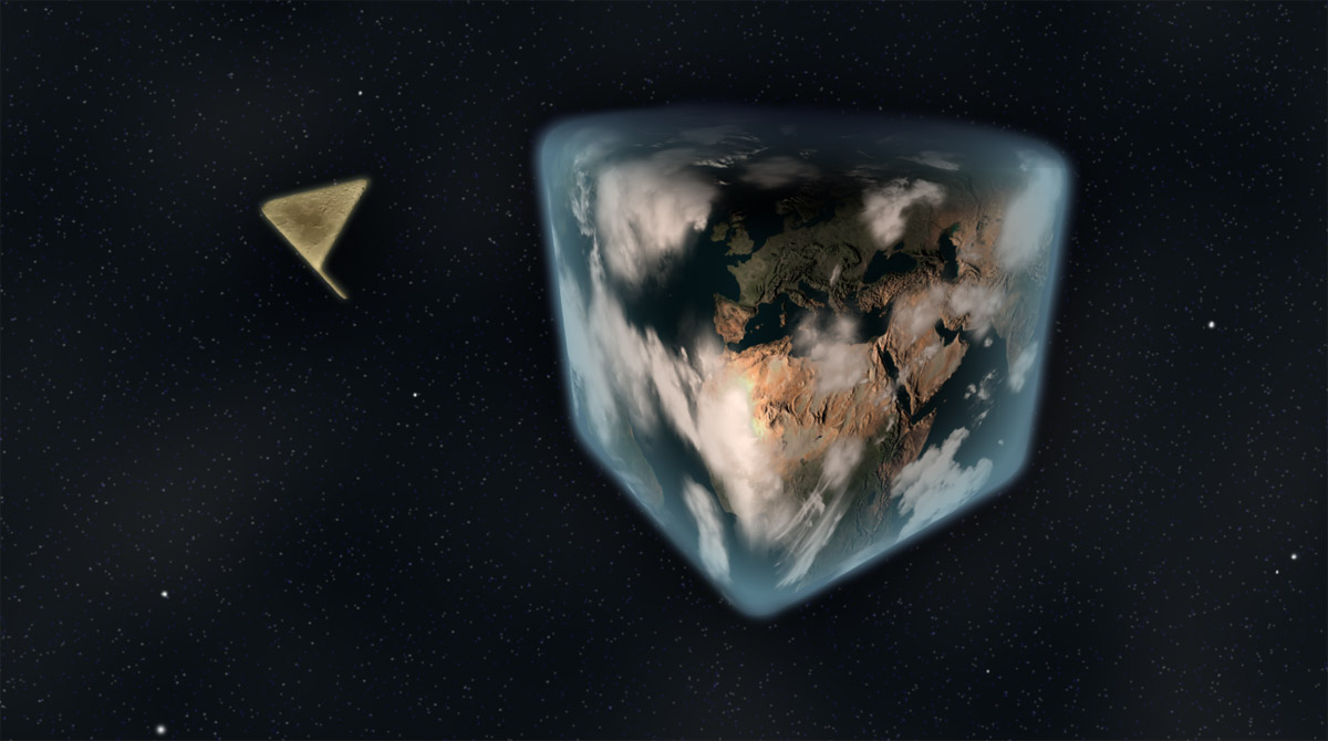 Me alegro que te guste la idea de una trayectoria triangular. Yo, divagando, ahora pensaba en como quedaría la sombra del satélite en el planetoide cubico, y como serían las fases de la luna, viéndolo desde el planetoide cubico.
