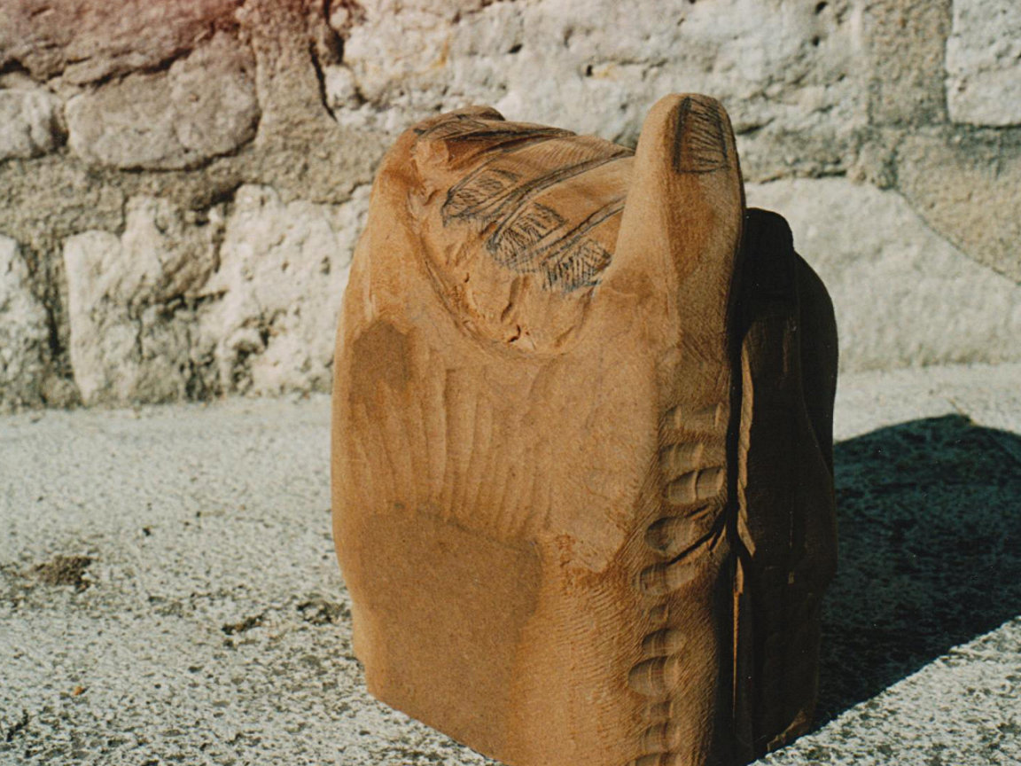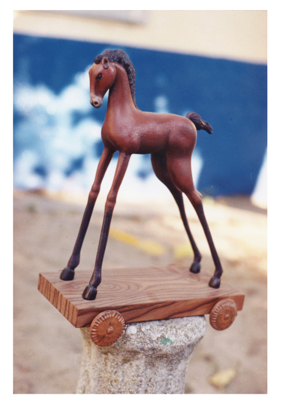 Es una exageración anatómica de un potrillo, tan exagerada en la delgadez que mucho me temo que ya está roto, porque a mí se me rompió dos o tres veces mientras lo tallába.