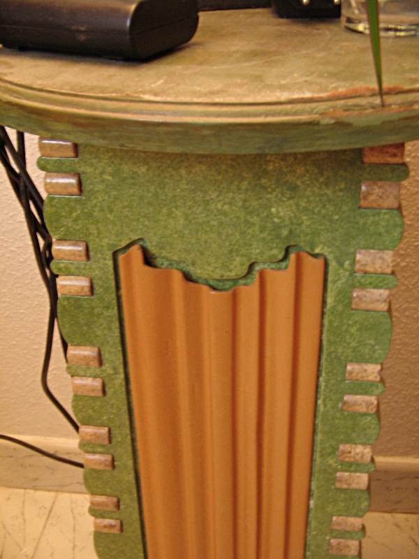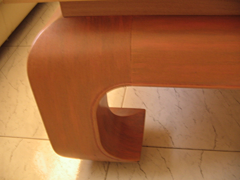 Y éso, muchas manos de lija, de más basta a más fina, con tres granos diferentes, la pintura utilizada es laca al agua, y entre mano y mano hay que dar otra pasada suave de lija muy fina, y entre las últimas capas, lana metálica superfina, no conté las manos de pintura aplicadas, pero pudieran ser una veinte, las primeras con un color base, hasta cubrir bien todo el poro y presentar una superficie continua y después de eso, variando un poco el color en ciertas zonas, capa a capa, finalmente, se puede extender un poco de cera de abrillantar muebles, aplicada con brocha, esponja, y estirada con las manos hasta que dejen de patinar, al día siguiente se frota con un paño, se podrá hacer en menos tiempo, pero yo era obsesivo con los renderizados, y nunca me metió prisa ningún cliente, porque era yo mismo.