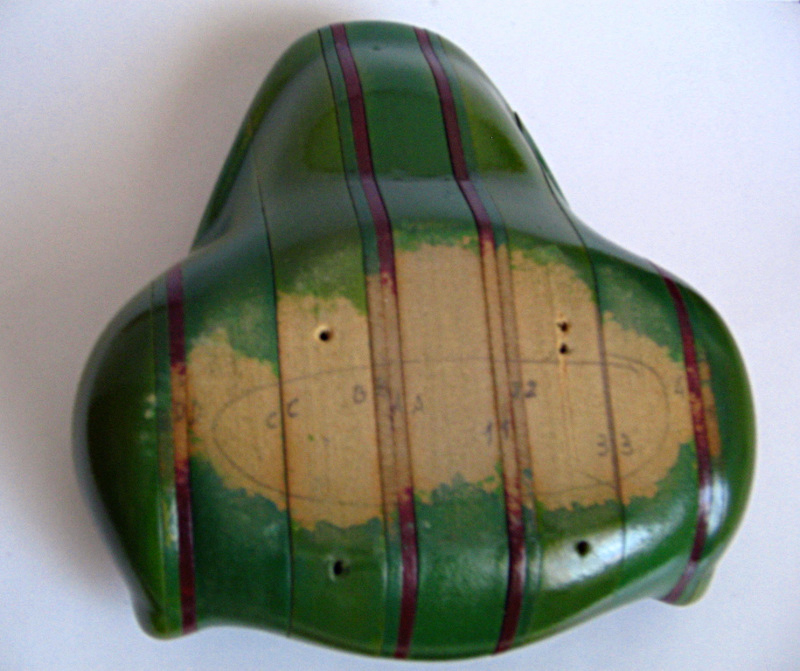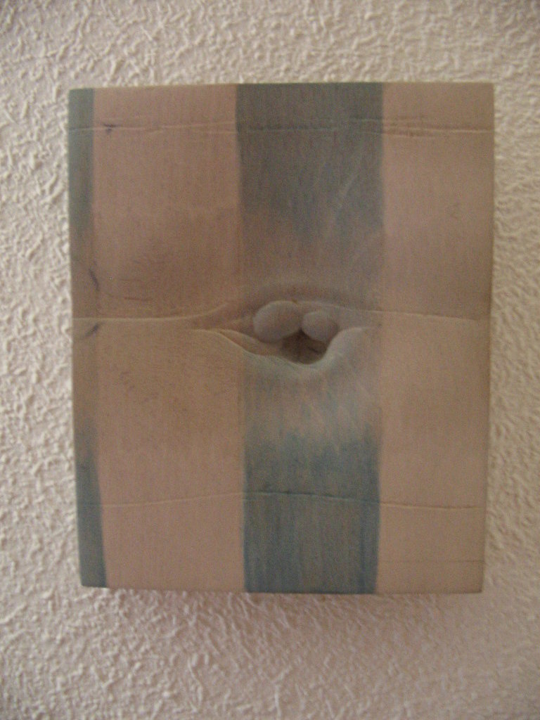 Posdata: encontré una fotografía que adjuntar. Un ombligo y alrededores talládo en madera de haya y teñido, (la superficie no llega a taparse de color), de albiceleste.