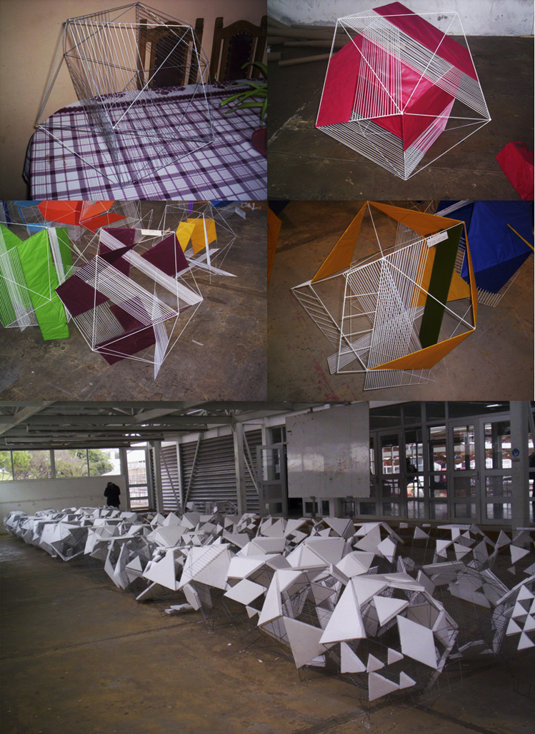 Vaya, el icosaedro de Edian me ha recordado al omnipoliedro (una figura compuesta por los sólidos platónicos) que hice hace unos diez años con mi novia por aquél entonces. Varas de madera cortadas a medida y pintadas con esmero, unas cuantas argollas y bridas, y voilá.