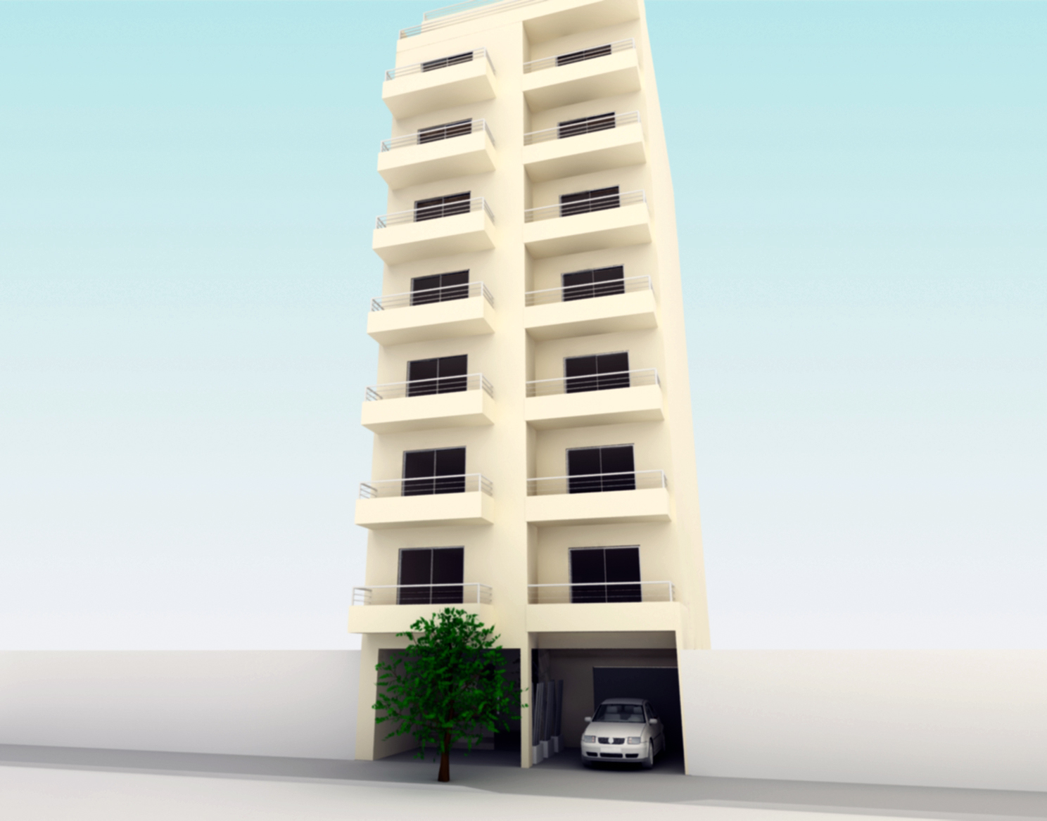 Bueno, como esperas críticas, te voy a decir unas cuantas con buena intención eh, en la primera fotografía, abajo veo como un garaje, sótano/garaje, y otra entrada que será para el edificio supongo, pero no se puede ver, por el árbol que está en medio, podrías intentar cerrar ese garaje y poner un local, por ejemplo, una tienda de ropa, quedaría más practico, en el render de la habitaicon/salón, podrías intentar ponerle un fondo con algún paisaje, ya que se ve en gris, añadir interructores, que a mucha gente se le olvida, un par de flores en la terraza, cuadros y te queda de maravilla. Pero igual buen trabajo.