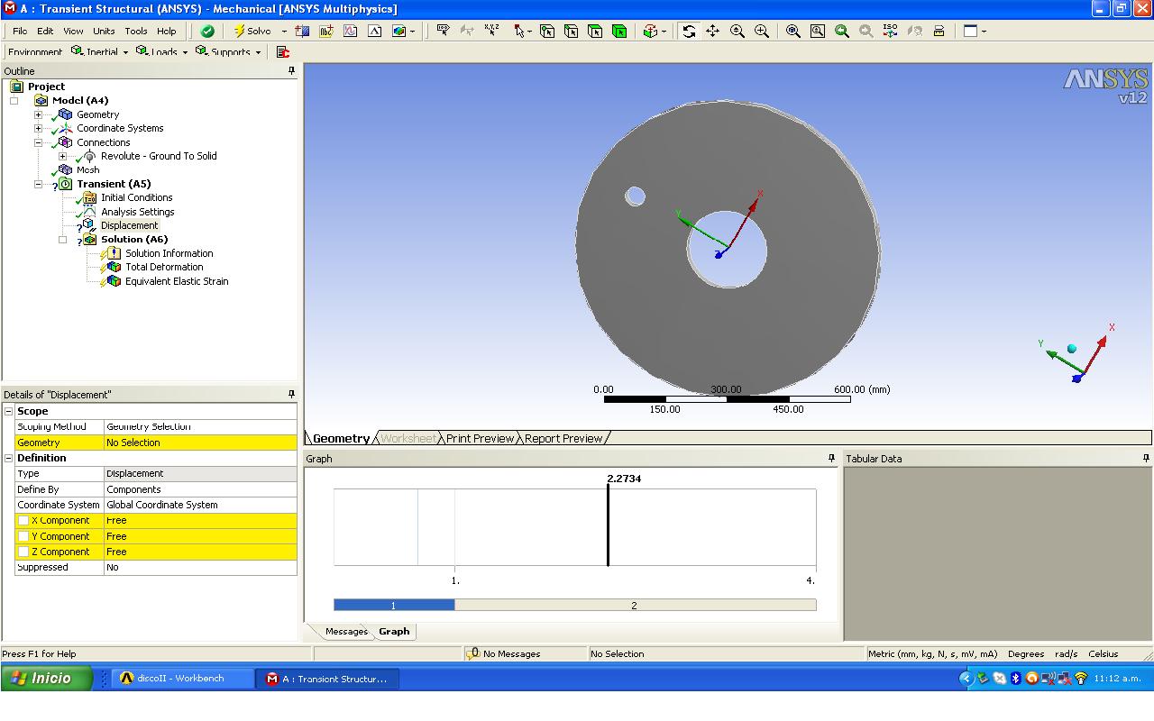 El disco solo tiene una restricción de revoluta en el diámetro interior, no tiene movimiento axial ni radial. Y es cuerpo flexible debido a que quiero saber los esfuerzos que se desarrollan.