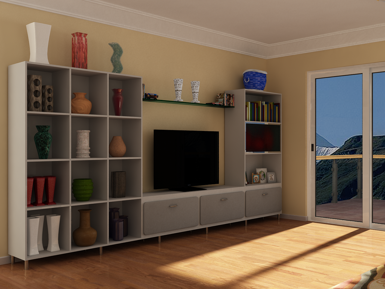 Bueno, os dejo unos renders de mi salón para que lo critiquéis y opinéis sobre detalles a mejorar, en particular me interesa mejorar el realismo de la escena. Todo lo he modelado yo, pero las texturas son pilladas de internet.