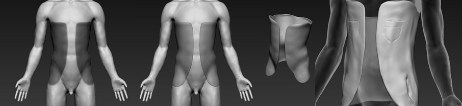 3 ya tienes una subtool con la forma de la ropa, ahora a modelar. (acuérdate de borrar la macara una vez hecho el extract).