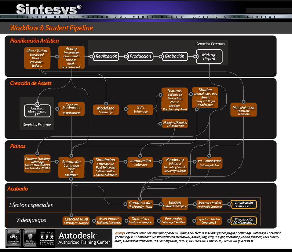 Nuestros nuevos programas de formación en arte y tecnología, están elaborados por nuestro personal autorizado por Softimage y nuestras jornadas de counseling por profesionales de Disney, Pixar, ILM, wetta, Filmax, tippet Studio, Digital Domain y Softimage entre otros.
