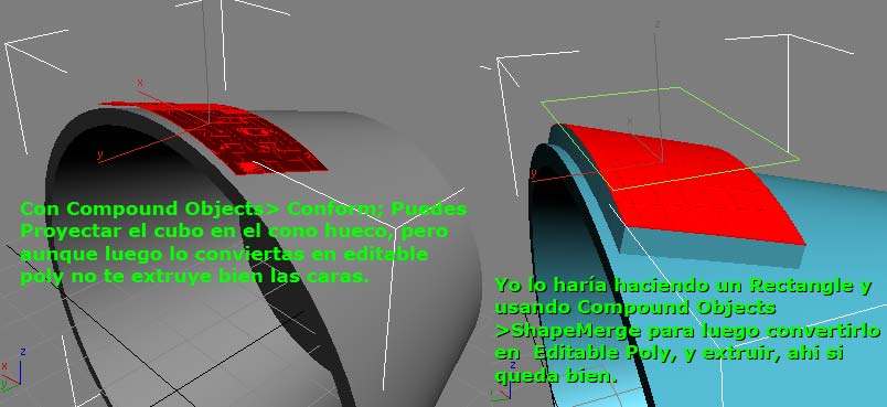 Hola, me gustaría unir dos objetos en 3dsMax de modo que uno adquiere la forma superficial del otro como en mí horrible dibujo en el que no sé si se apreciará bien el efecto (cómo si pegasemos una pegatina sobre un objeto que no es plano). Creo recordar que hay una forma de hacerlo, pero no consigo acordarme como (o puede que me esté confundiendo con otra cosa).