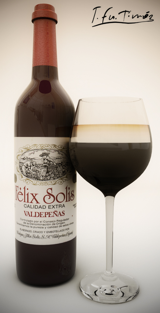 Visualización de una botella de vino con su copa. Modo+Photoshop para la postproducción.