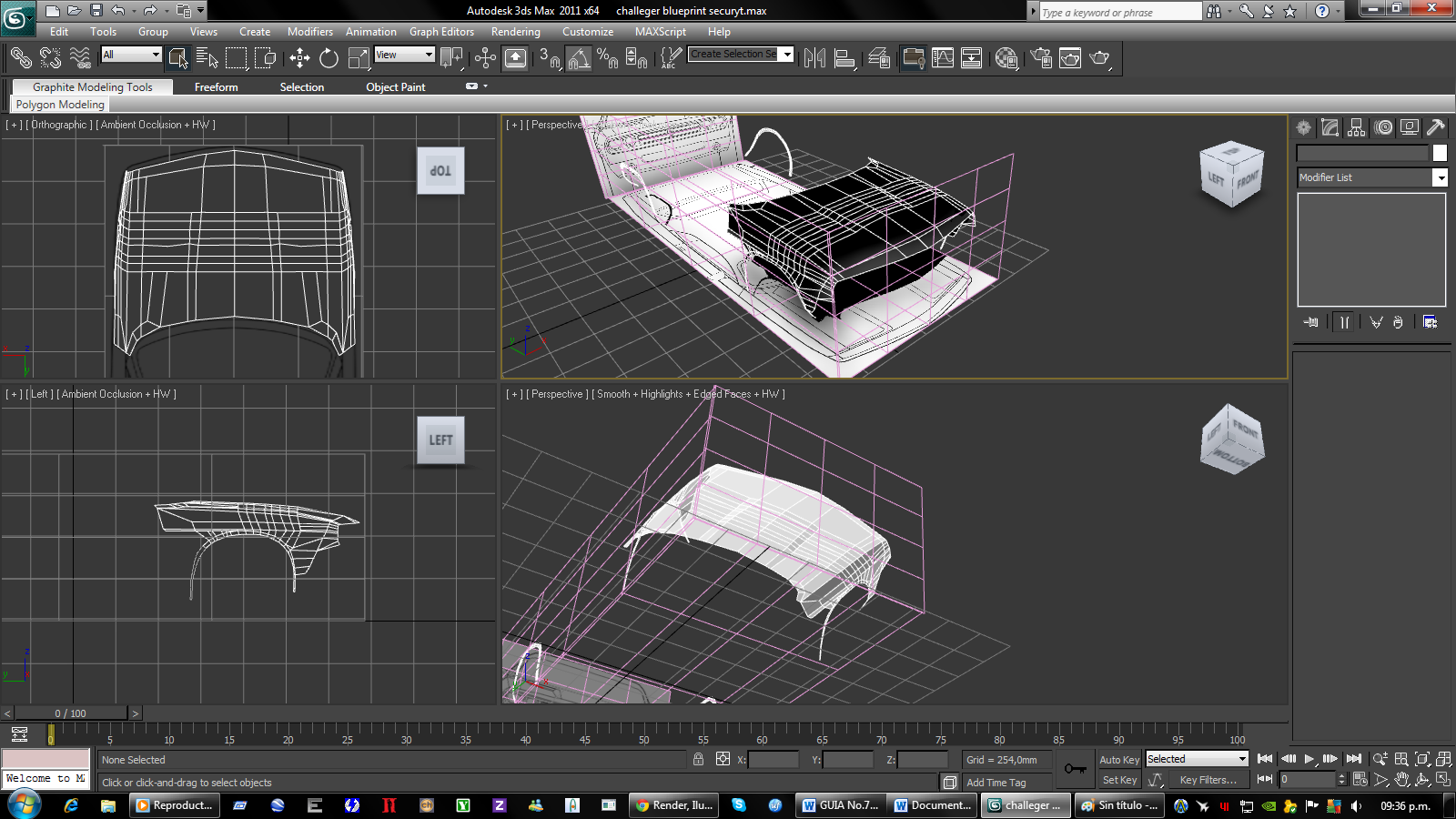 Hola, bueno soy nuevo en el foro, empecé a trabajar con 3d Studio Max hace unos días, resulta que, estoy haciendo un dodge Challenger r/t con un blueprint, me coste un huevo hacer cuadrar los planos de los dibujos, la resolución de las texturas del blueprint, y más aún, empezar a modelar las partes del coche, seguí varios tutoriales de YouTube y al final logre hacer algo, hasta el momento llevo la parte frontal, a mi criterio esta bien y cuadra casi que perfecto con las líneas de guía del blueprint, tenía todo el modo de vista del viewport en flat + edged Faces, cuando lo cambie a smot + highlights me lleve la sorpresa de que todo lo que había hecho estaba al revés t_t, me explico, han visto cuando crean, por ejemplo, un plano y al rotar la cámara la parte trasera se ve negra como si no le llegara la luz?
