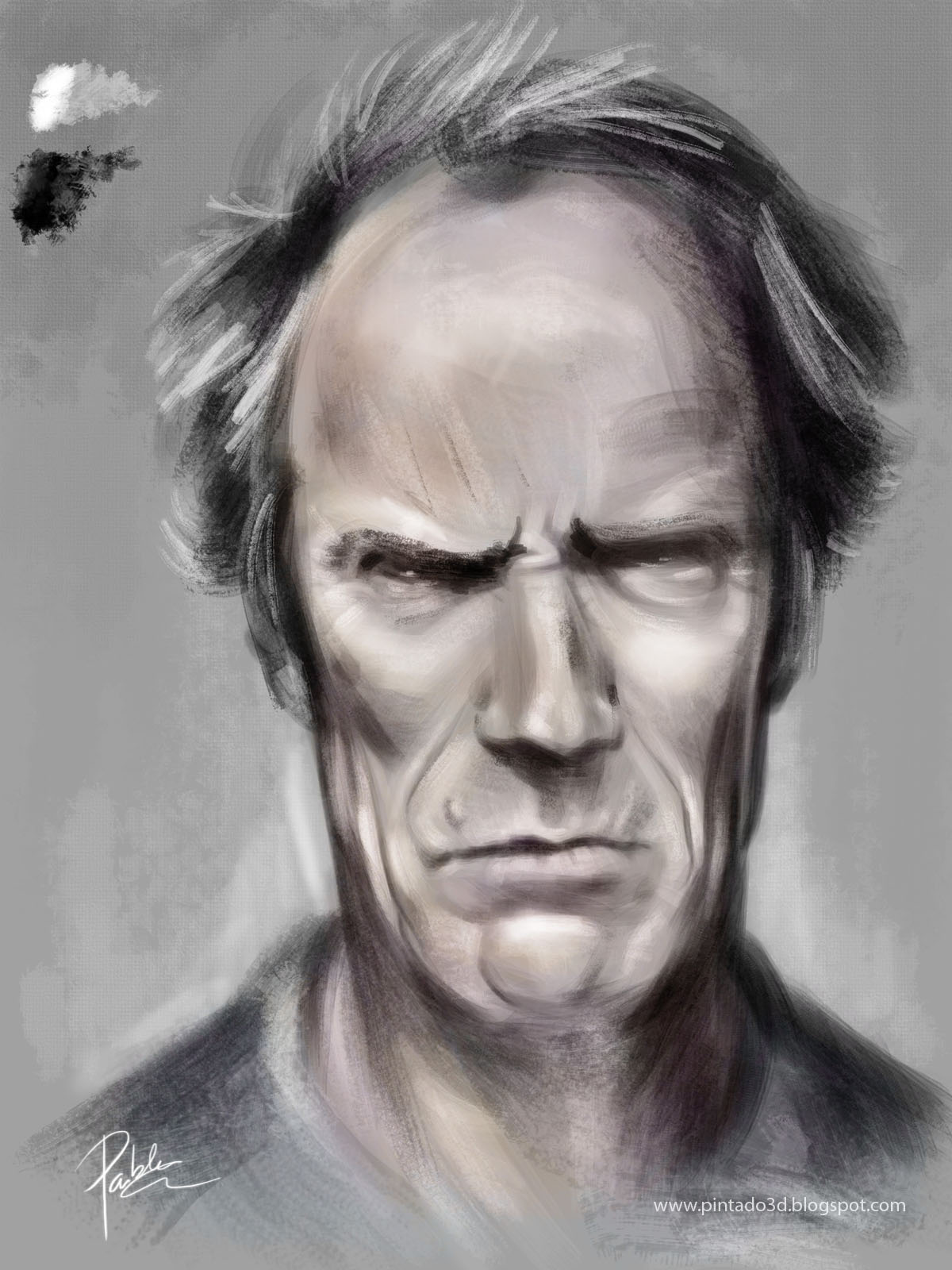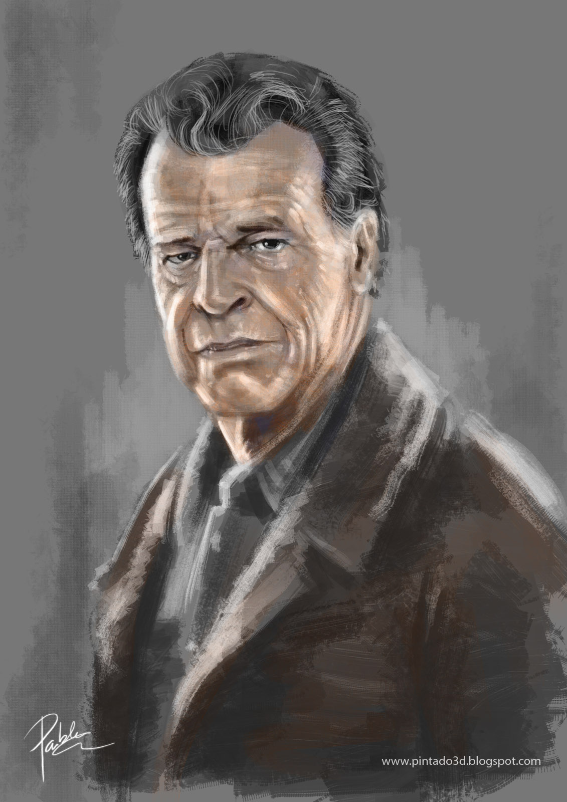 . Hola, os resumo un poco la historia, hace ya unos cuantos años que no hacía ninguna pintura o dibujo, por razones varias acabé un poco quemado, pero últimamente me venía picando ya el gusanillo de dibujar o pintar algo de nuevo, no es gran cosa, pero estoy contento porque supone mi vuelta a algo que tanto me gustó siempre. Lo he hecho en 2-3 horas más o menos así que, supongo que, lo considero speed painting. Y nada más, creo que sabéis quien es, me he basado en una fotografía googleada, pero no es overpainting.