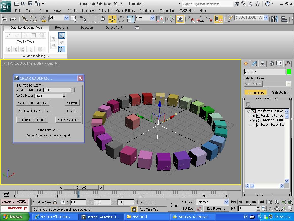 Pues ahí empecé a construir mi primer script crear cadenas, pero, mucho ojo no todo aparece en el Maxscript Listener, ahí es.