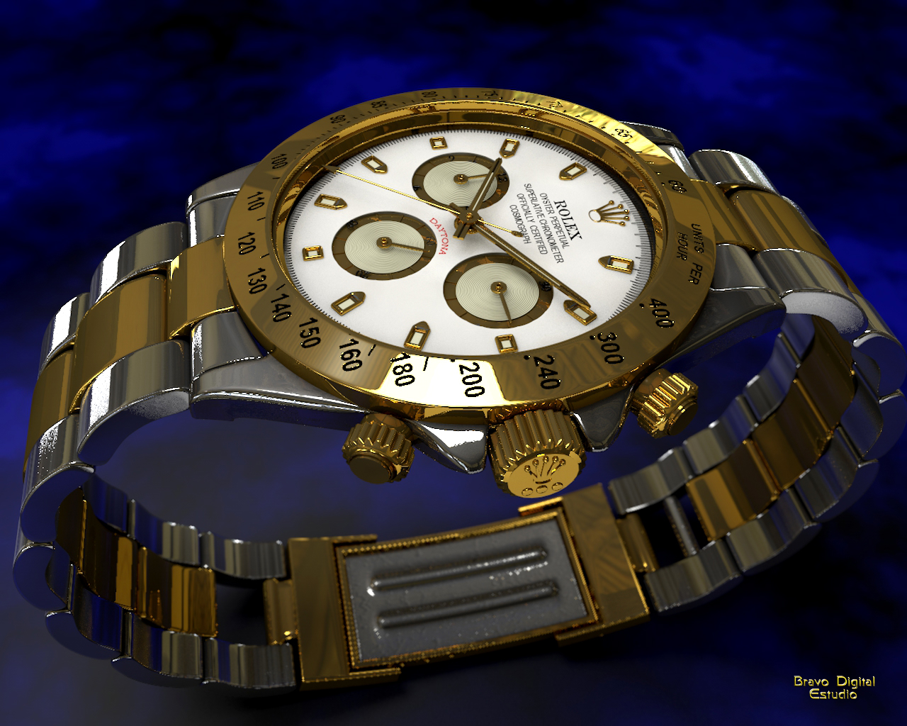 Rolex daytona modelado en maya texturizado y rendereado en cinema4d