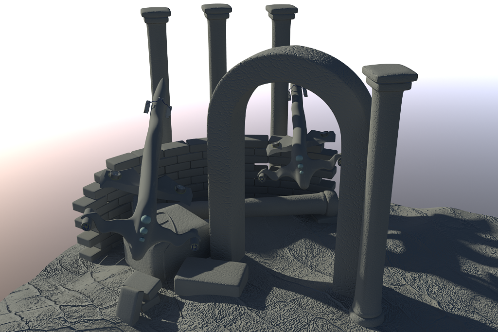 Decorados para el juego: desde una fuente, un pozo, una tumba, hasta un tronco de árbol retorcido y gordo, incluso puedes modelar un cuervo. Lo que quieras.