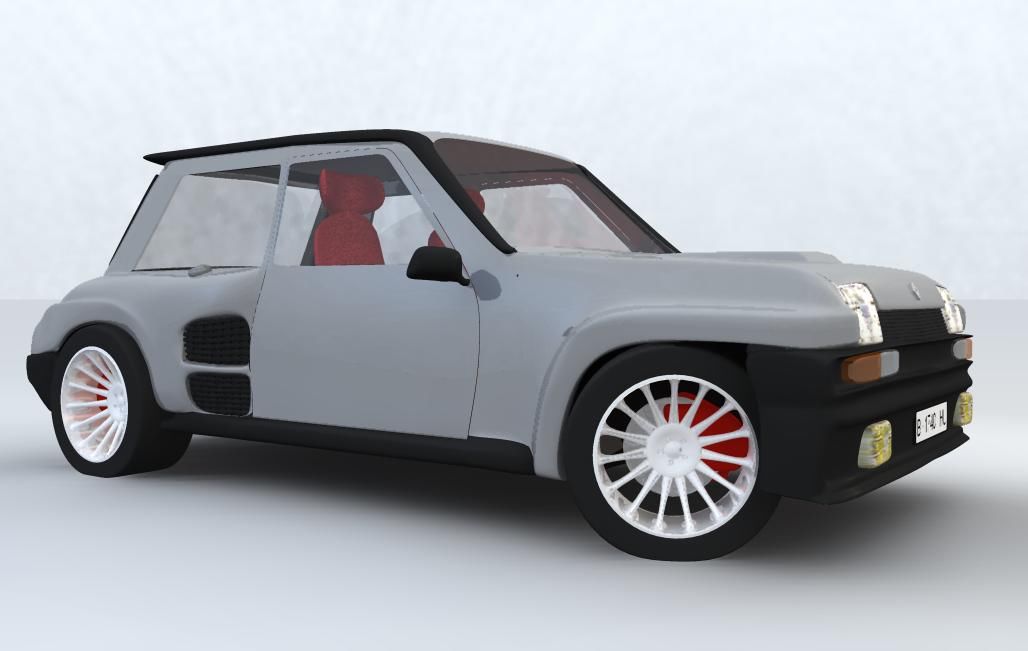 Se trata de mi coche favorito el Renault 5 turbo 2, aún está en proceso de modelado, pero como no podía esperar más, hice unas pruebas de render y la verdad es que no me convence nada, no sé, he visto fotografías por el foro de coches que habéis hecho y se me cae la baba viendo los efectos de reflejos que se pueden llegar a conseguir, pero no sé cómo montármelo. Si alguien me pudiera ayudar.